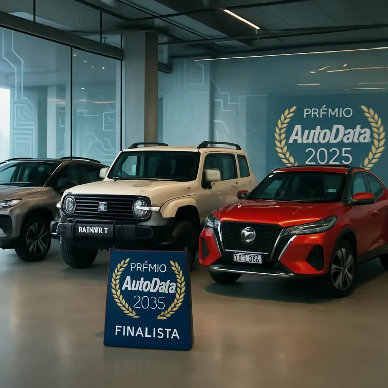 Quatro ícones do mercado automotivo disputam o prestigiado Prêmio AutoData 2025.Os finalistas confirmados: Fiat Pulse, GWM Tank 300, Nissan Kicks e Vo...
